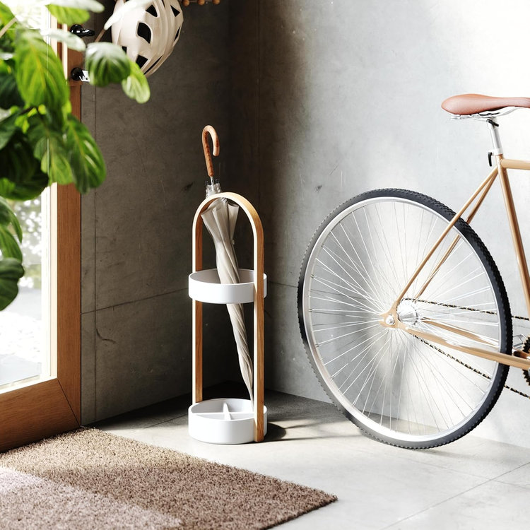 Le porte-parapluie Umbra Bellwood se distingue par son design minimaliste associant bois naturel et blanc. Stable et durable, il accueille facilement parapluies longs ou pliables. Son style épuré apporte une touche élégante à votre entrée tout en restant fonctionnel.